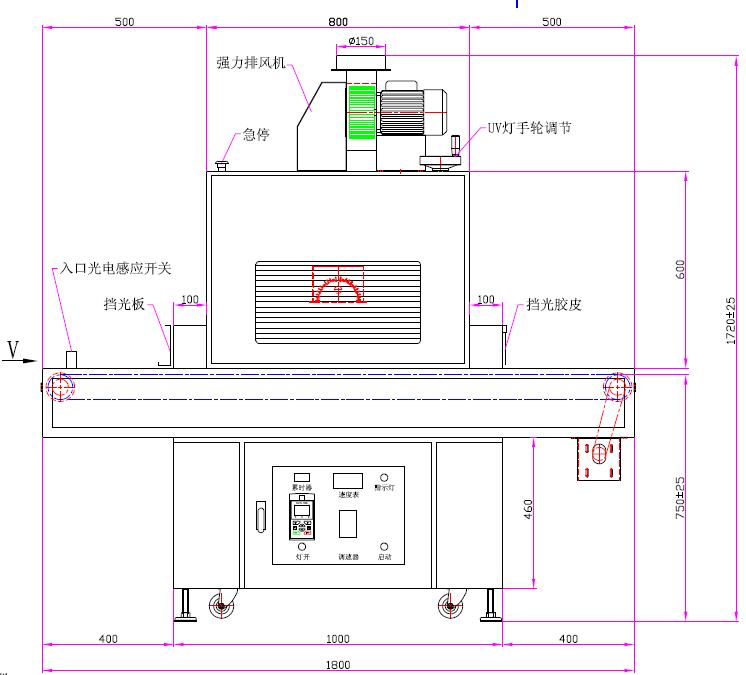 | 1、UV燈功率:8.0kw*l支 (UV鹵素?zé)簦?/td> | 2、UV燈總長(zhǎng): 620mm、弧長(zhǎng):500mm |