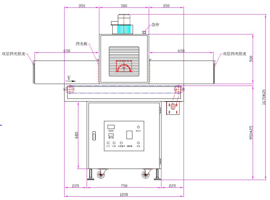 | 1、UV燈功率:5.0kw*1支(UV汞燈) | 2、UV燈總長(zhǎng):620m、弧長(zhǎng):50Omm |