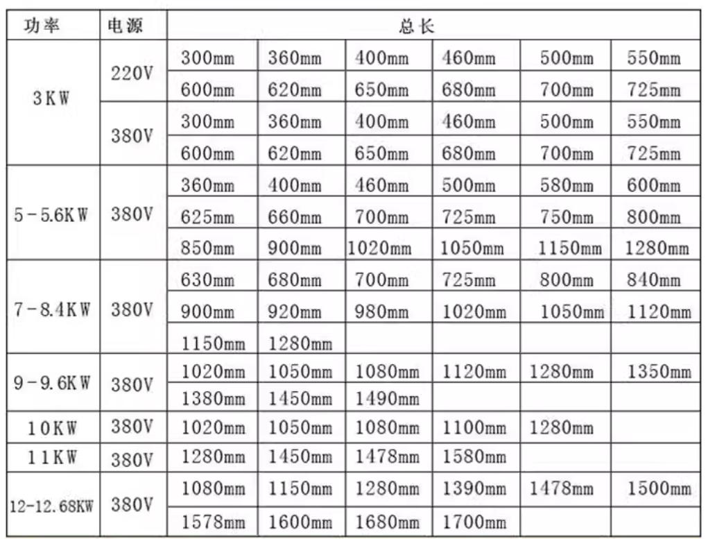 | uv固化燈 | 2kw | 210 | 230 | 270 | 300 | 330 | 360 | 400 | 460 | 550 |